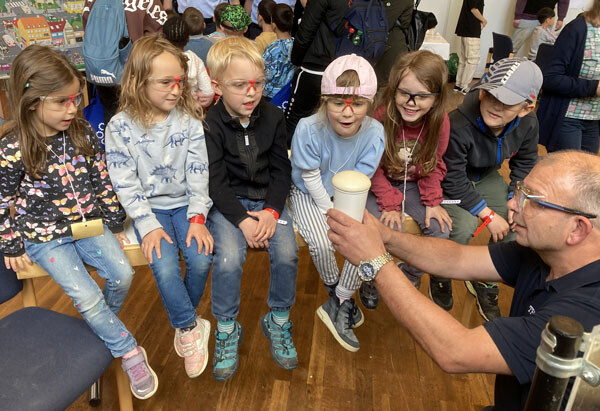 Aber das war noch nicht alles. Nachdem der Schuss aus dem Becher alle verblüfft hatte, erlebten die Kinder eine weitere spannende Phase des Experiments.